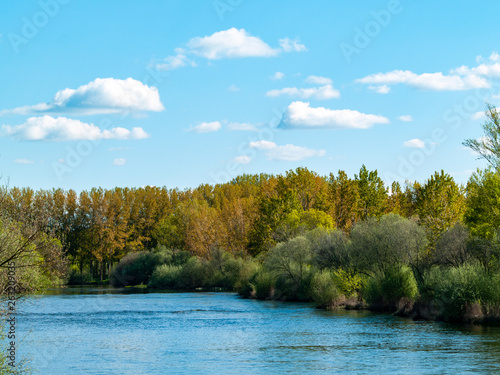 © anuskiserrano, Fototapeta premium Landscape of a river with calm water in spring