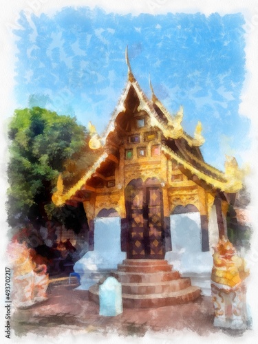 © Kittipong, Fototapeta premium Landscape of ancient northern architecture in Chiang Mai Thailand watercolor style illustration impressionist painting.