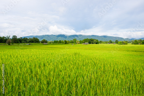 Fototapeta premium Landscape of beautiful Golden rice field in Asia.