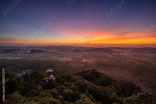 © sihasakprachum, Fototapeta premium Landscape of beautiful sunrise at Khao Na Nai Luang Dharma Park in Thailand