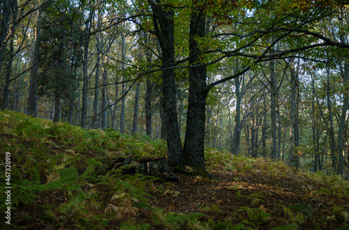 Naklejka premium Landscape of chestnut trees forest in autumn, in El Tiemblo, Avila, Castilla y leon, Spain