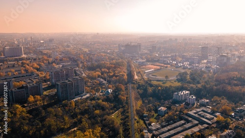 © Vadym Bilan, Fototapeta premium Landscape of City in fog, Lviv, Ukraine