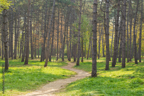 Obraz premium landscape of city park with fir-trees and green lawn