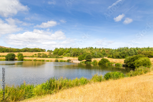 Fototapeta premium Landscape of Garn Lakes Local Nature Reserve in Blaenavon, Wales, UK