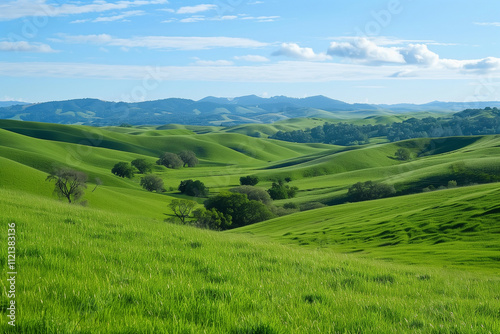 Fototapeta premium landscape of green fields with beautiful clouds floating over blue sky illustrating elements of natural beauty