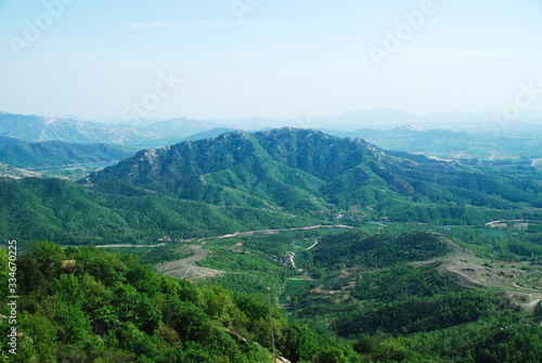 Naklejka premium Landscape of green mountains and mist in summer