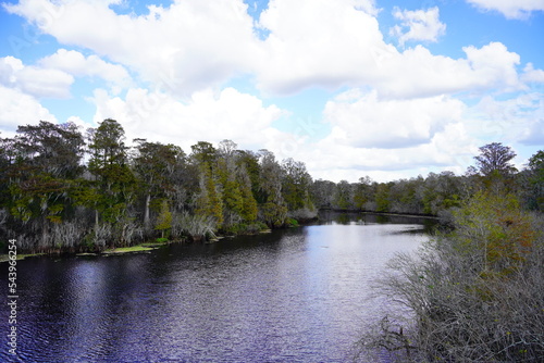 Obraz premium Landscape of Hillsborough river at Lettuce lake park in autumn