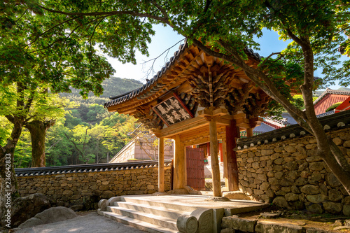 Naklejka premium Landscape of Hwaeomsa Temple, An ancient Korean Buddhist temple in Jirisan...