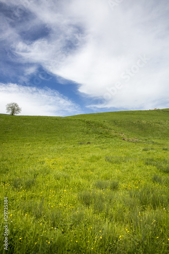© Melanie, Obraz premium landscape of Jura mountain with blooming green meadow, Switzerland