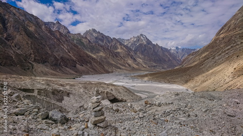 Obraz premium Landscape of K2 trekking trail in Karakoram range, Trekking along the Braldu River in the Karakorum Mountains in Northern Pakistan