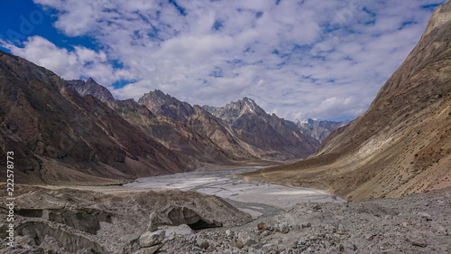 Obraz premium Landscape of K2 trekking trail in Karakoram range, Trekking along the Braldu River in the Karakorum Mountains in Northern Pakistan