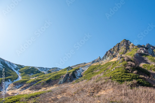 Fototapeta premium Landscape of Mountain with Blue sky at Komagatake mountain.Japan