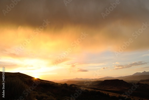 © gerda1201, Obraz premium landscape of mountains and fields at sunset, wyoming,usa