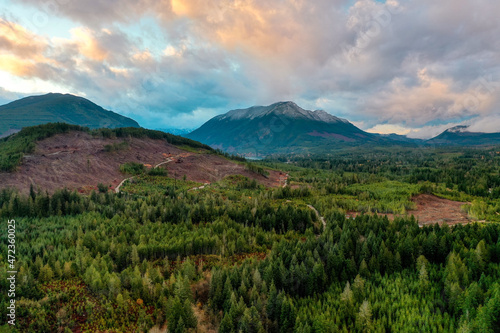 © Dylan, Fototapeta premium Landscape of mountains and forests with evidence of logging