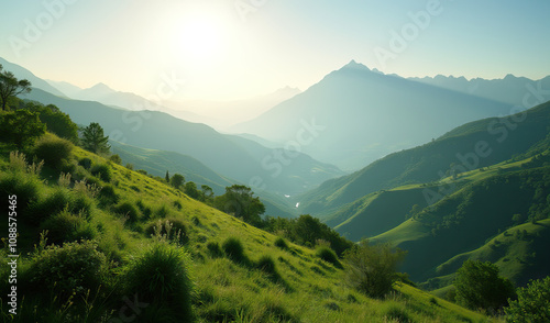 © Kuan, Fototapeta premium landscape of mountains with sprawling greenery