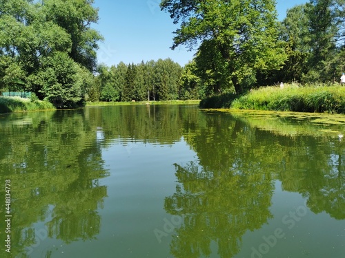© Владимир, Fototapeta premium landscape of Pavlovsk Park wooded shore canals summer day