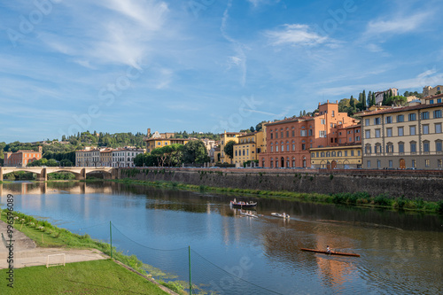 Fototapeta premium Landscape of Ponte Vecchio And Arno River in Florence, Italy