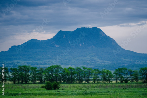 © Alexander, Naklejka premium Landscape of savanna with mountain