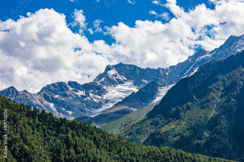 © ЮРИЙ ПОЗДНИКОВ, Fototapeta premium Landscape of snow-capped mountains and rocks