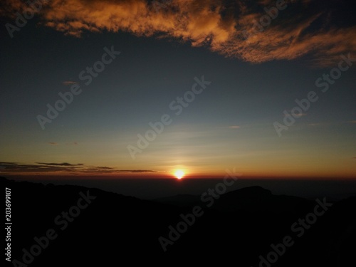 © cocorattanakorn, Obraz premium Landscape of Sunrise on top of mountain with view into misty valley.Foggy mountain in Chiangmai province,Thailand