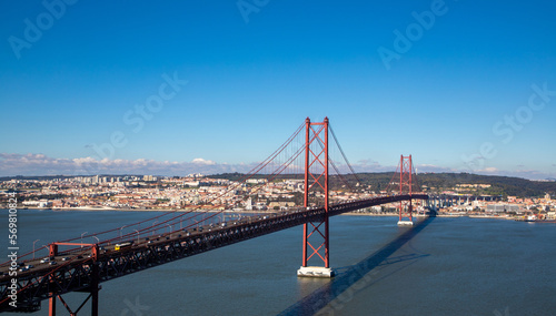 Fototapeta premium Landscape of the April 25 bridge between Almada and Lisbon - Portugal