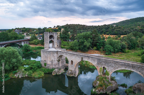 Fototapeta premium Landscape of the Besalú Bridge, Spain