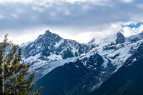 Fototapeta premium Landscape of the French Alps with the Mont Blanc and the aiguille du midi