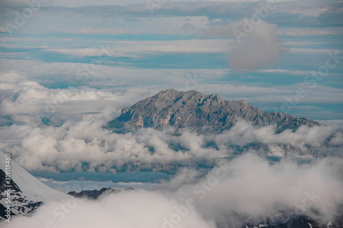 Obraz premium Landscape of the mountain in the white fluffy clouds