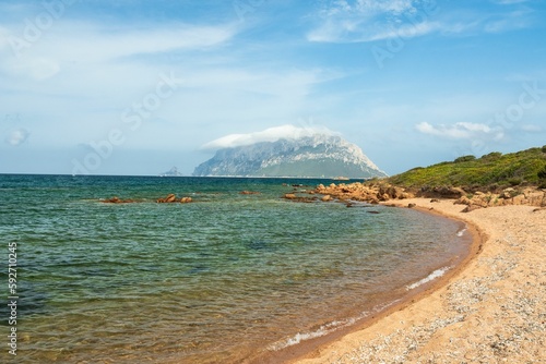 Fototapeta premium Landscape of the Sardinian sea surrounded by a beach near Porto Taverna, Italy