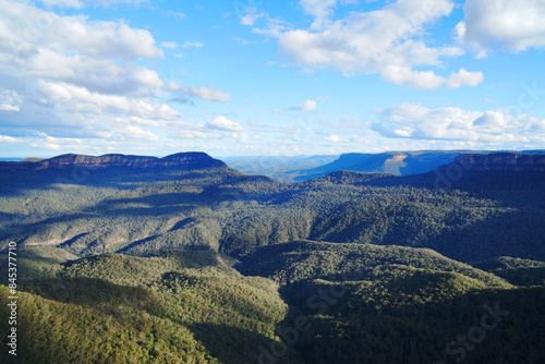 Naklejka premium Landscape of The Three Sisters are an unusual rock formation in the Blue...