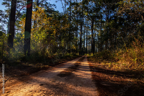 © Vatanika, Naklejka premium Landscape of Thung Salaeng Luang National Park Phetchabun Province. Beautiful nature of morning sunrise and mist in the savannah in winter, Thailand.