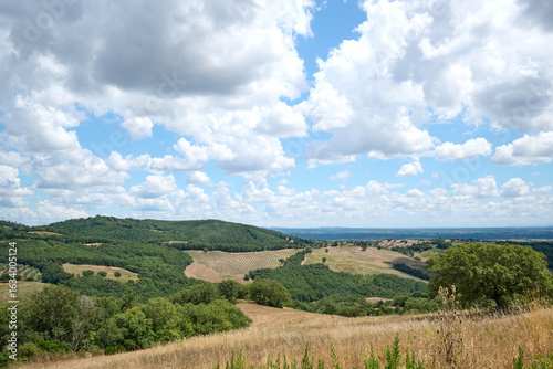 Fototapeta premium landscape of tuscany with blue sky with clouds and hills and trees