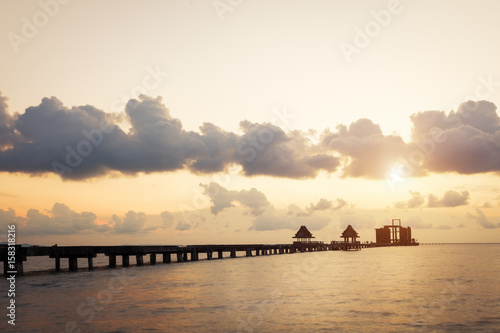 Obraz premium Landscape of Wooded bridge in the port between sunrise