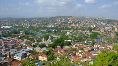 © Youssef, Obraz premium landscape old Town and houses of Tbilisi , Georgia from Above Narikala fort: Holy Trinity Cathedral, Tranquil Lake Views, Peace Bridge Charm, Nmetekhi St. Virgin Church Heritage Zion Cathedral Majesty