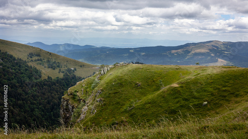 Naklejka premium Landscape photo of the mountainous and hilly environment of the French Vosges region of Haut-rhin, taken close to the mountain named 'Grand Ballon'