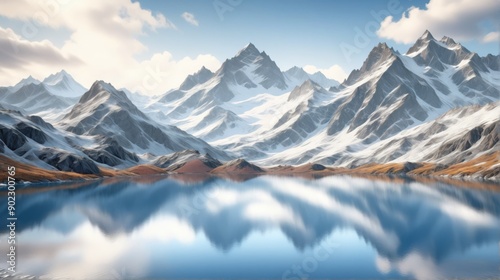 © Panuwat, Fototapeta premium Landscape photograph mountain range lake foreground mountains ar