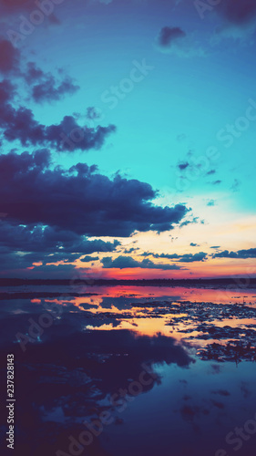 © theevening, Fototapeta premium landscape river twilight sunset evening