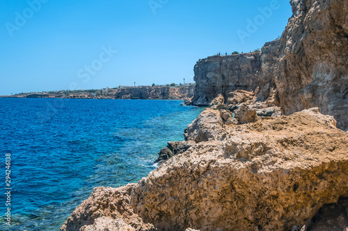 Fototapeta premium landscape scene background waves Sinai mountains red sea Egypt