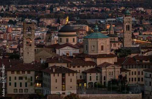 Fototapeta premium Landscape shot of the beautiful city of Bergamo, Italy, under the blue sky