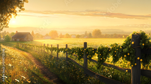 © 新然 许, Naklejka premium landscape, sky, nature, grass, field, countryside, summer, green, sunset, meadow, mountain, rural, tree, view, country, hill, valley, autumn, forest, road, agriculture, panorama, clouds, farm, cloud