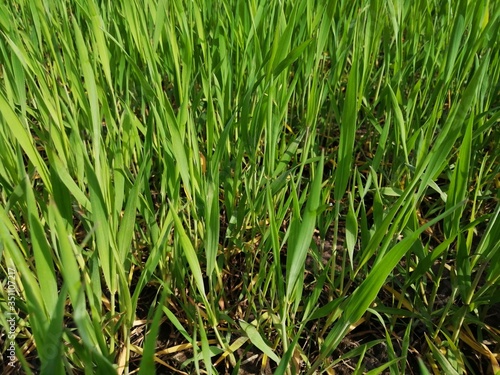 Fototapeta premium landscape summer green grass macro close-up view close close from below...
