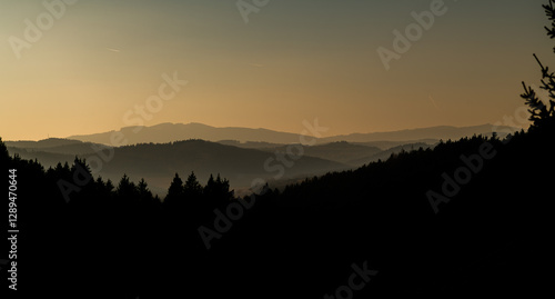 Fototapeta premium Landscape view in winter evening in south Bohemia mountains region