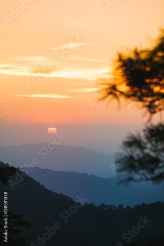 © Korradol, Fototapeta premium landscape view include mountain and forest with sunset scene