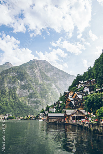 Fototapeta premium landscape view of hallstatt city in austrian alps