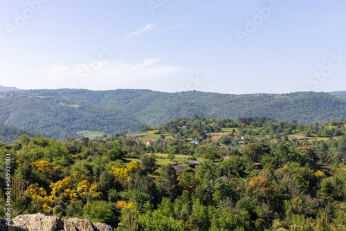 © Christian Rojo/Wirestock Creators, Fototapeta premium Landscape view of the green autumn trees on the hills in the countryside