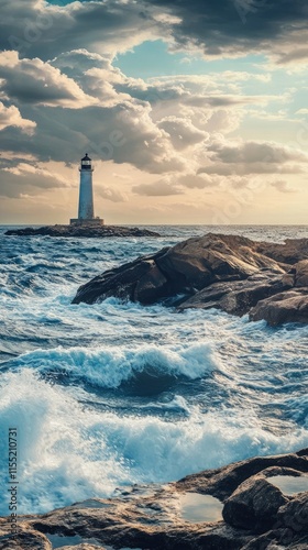 Fototapeta premium Landscape with a lighthouse and a raging sea. Picturesque picture,...
