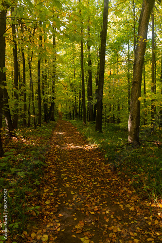 © Jury, Obraz premium Landscape with a road in the autumn deciduous forest