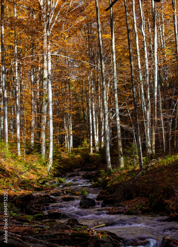 © sebi_2569, Fototapeta premium Landscape with a stream in a yellowed forest