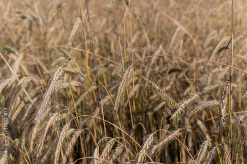 Fototapeta premium Landscape with a view of a wheat field with a beautiful sky with clouds on a...