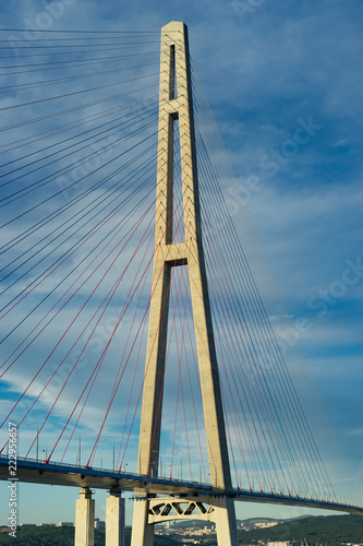 Naklejka premium landscape with a view of the architecture of the Russian bridge. Vladivostok, Russia